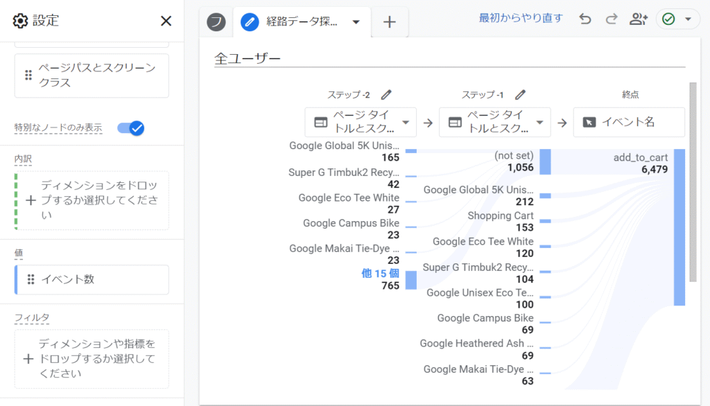上記のように、該当のイベントを発生させるまでにユーザーがどのような経路を辿ったかを確認できます。