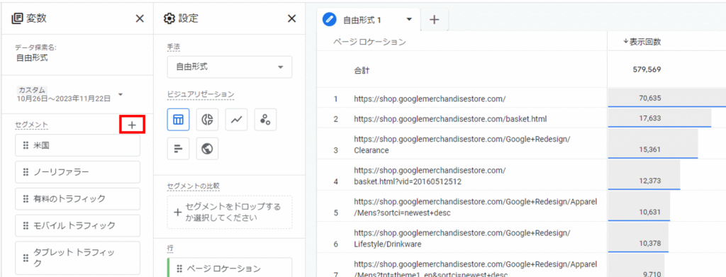 【実演付き】自由形式レポートでページごとの表示回数を見る