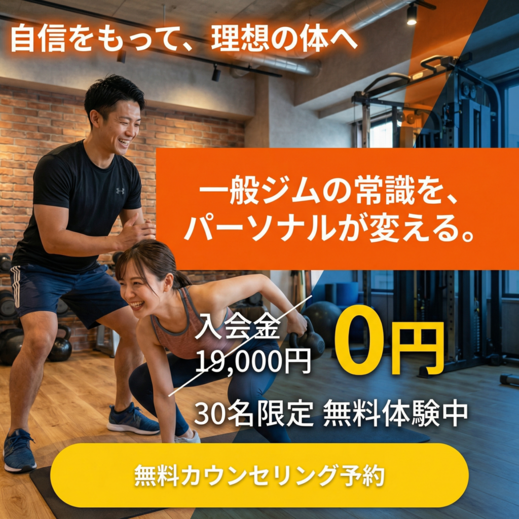 メインコピー: [一般ジムの常識を、パーソナルが変える。]