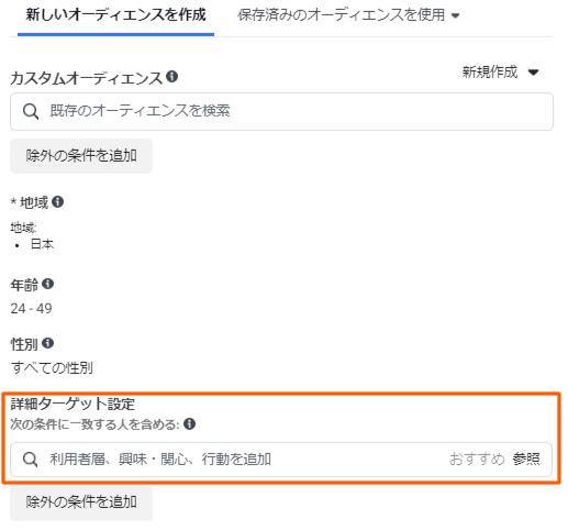 詳細ターゲット設定は、名前の通り非常に詳細にターゲットの指定ができる項目です。